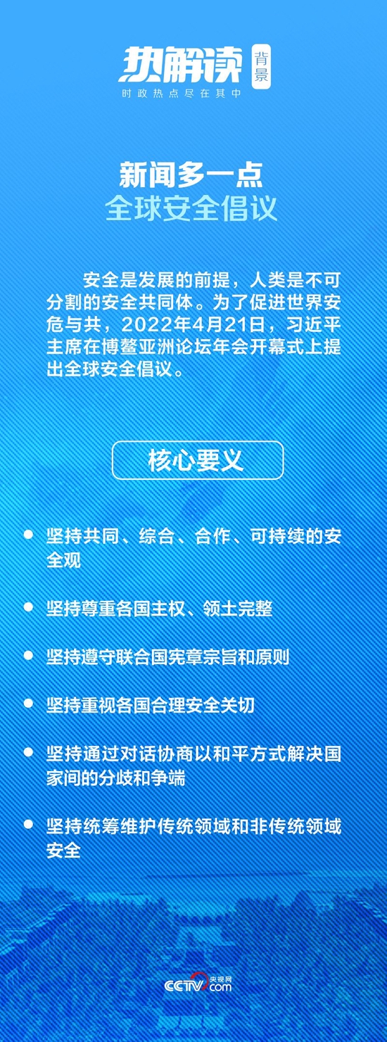 本次峰会上,习主席进一步明确阐释全球安全倡议的目的——同大家一道,弘扬联合国宪章精神,本着安全不可分割原则,坚持共同、综合、合作、可持续的安全观,倡导通过谈判消弭冲突,通过协商化解争端,支持一切有利于和平解决危机的努力。