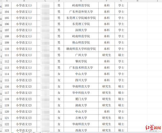 小吉告诉红星新闻记者,名单上这样的学历、学校背景差异,曾经为当地教育局招来投诉。对此,教育局工作人员曾作出答复。“两年前有人就这个问题进行过投诉,他们(教育局)的答复就是要保持招聘男女生的性别平衡。”小吉说。