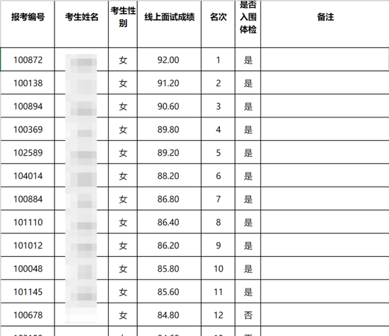 “当年(2020年)的招聘分了两个环节,第一轮是简历初筛,第二轮是领导在线上进行面谈,面谈之后会按照1:2的比例设置面试。女生这边,我记得当年好像有上万人去报考,到简历这一关,女生基本上最低都是211学校的本科或硕士。”小吉回忆说,“我们(女生)当年看到这个(拟聘)名单之后都在讨论,但也没什么办法。因为刚开始招聘时我们女生是跟男生分开的,我们只了解(女生)内部情况。”小吉对红星新闻记者说。