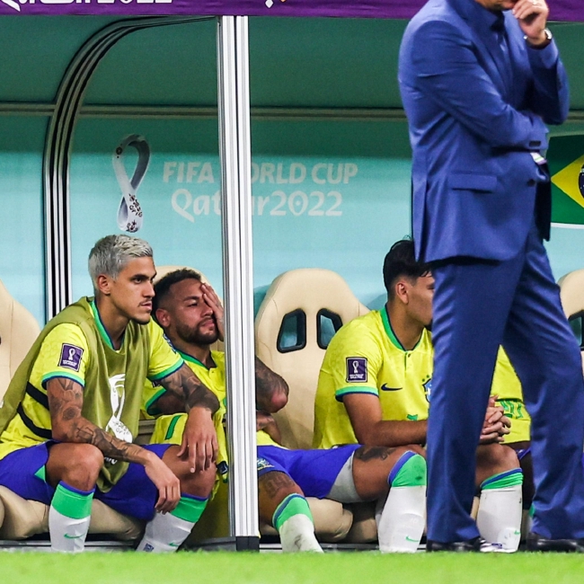 坐在替补席上的内马尔疑似哭了,他可能感觉自己的伤情不轻。