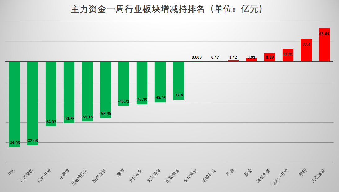 资金流向上,本周主力资金对工程建设、银行、房地产开发、通信服务等板块颇为青睐,对中药、化学制药、软件开发、半导体等板块则大幅减持;本周北向资金对银行、饮料、电力、白色家电等板块颇为青睐,对造纸印刷、生物医药、化学制药等板块则大幅减持。