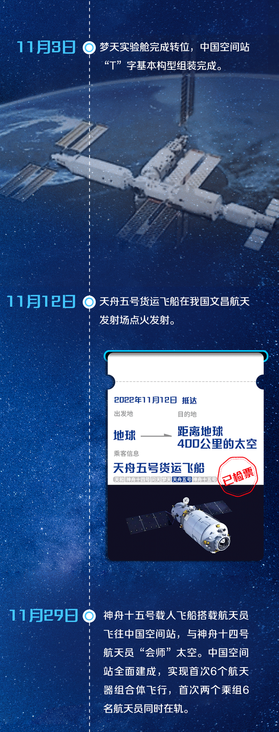 神舟十五号,即将发射!北京时间11月29日23时08分,神舟十五号载人飞船将搭载航天员费俊龙、邓清明、张陆飞往中国空间站,与神舟十四号航天员“会师”太空。两个乘组6名航天员将同时在轨飞行,完成首次航天员乘组的在轨轮换。