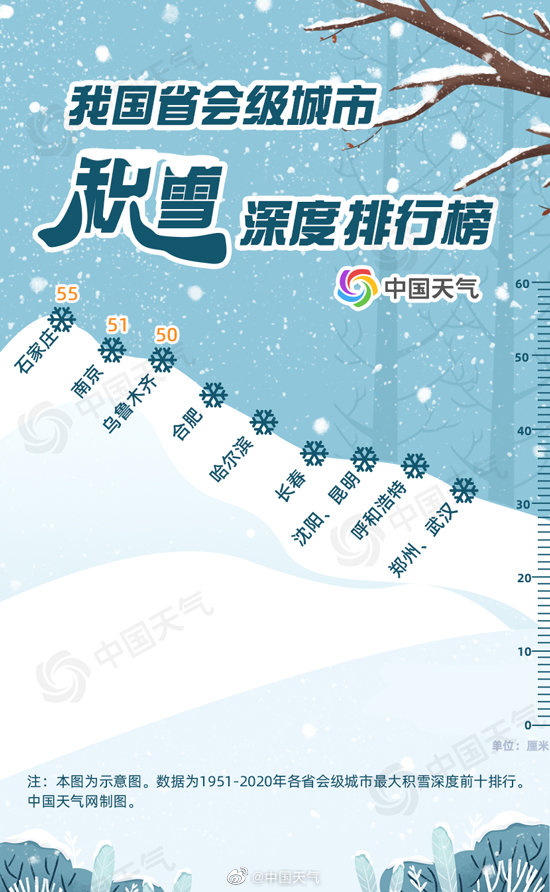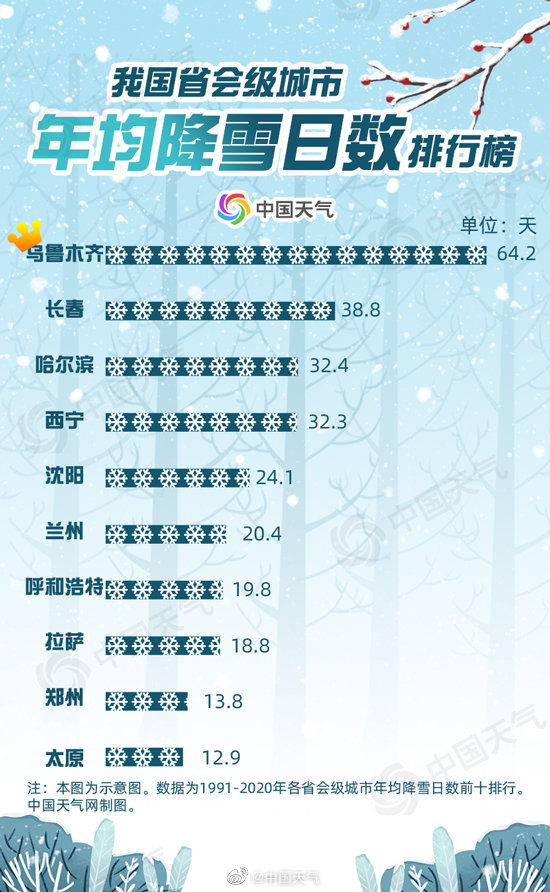 #老师暂停上课让学生撒欢玩雪# 【#南方积雪竟然曾超越东北# ?大数据揭秘#我国十大积雪最厚省会级城市# 】无雪不冬天!从古至今,雪总是能占据冬天的C位,现在更是一下雪就“热搜”。@中国天气 整理了近70年的气象大数据,看看哪里降雪日数多,哪里积雪最深。还有省会级城市积雪排行榜,结果竟然让人有些意外