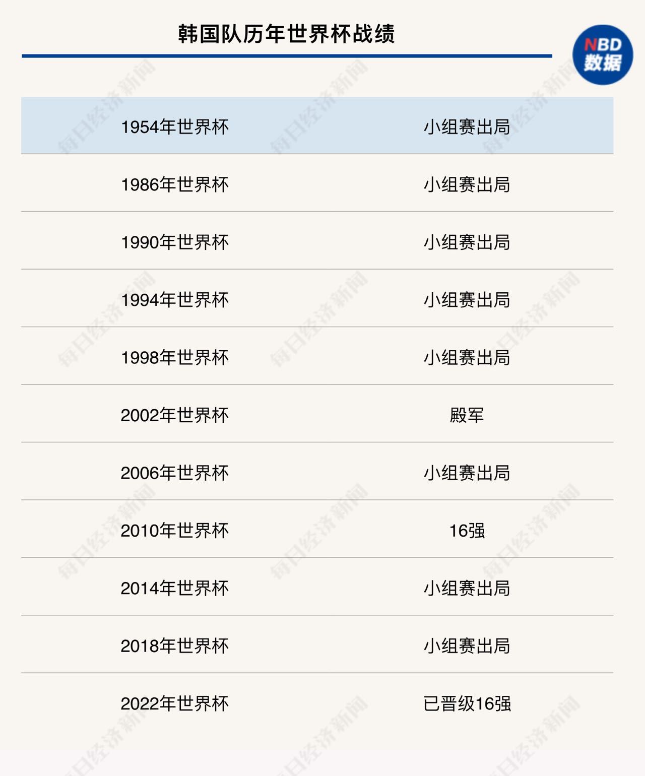 韩国队历年世界杯战绩(数据来源:国际足联,制图:每经编辑高涵)