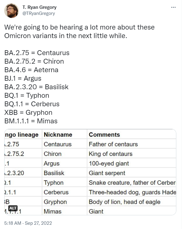 关键词检索可知,事实上,这种叫做BQ.1.1的新冠变异毒株早在7月时就已经出现,最早被发现于尼日利亚,到10月时已经引起全球科学界和媒体的广泛关注。而“地狱犬”的名称早前出现在社交平台上,网友将其作为BQ.1.1的代称,是为与同时间流行的其余毒株,如BM.1.1.1、BA.2.75、BA.4.6等做区分,并非官方命名。