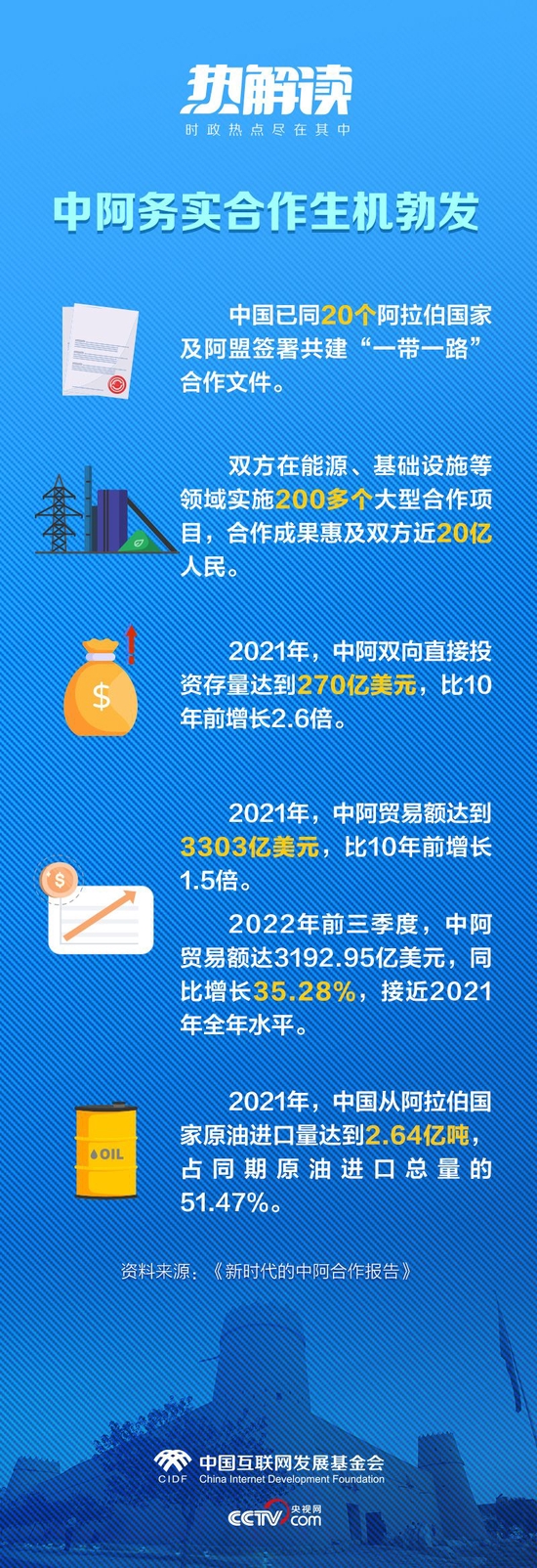 “让我们弘扬中阿友好精神,携手构建面向新时代的中阿命运共同体,一起开创中阿关系更加辉煌灿烂的明天!”2022年12月,习近平主席在首届中国-阿拉伯国家峰会开幕式上如此期许。