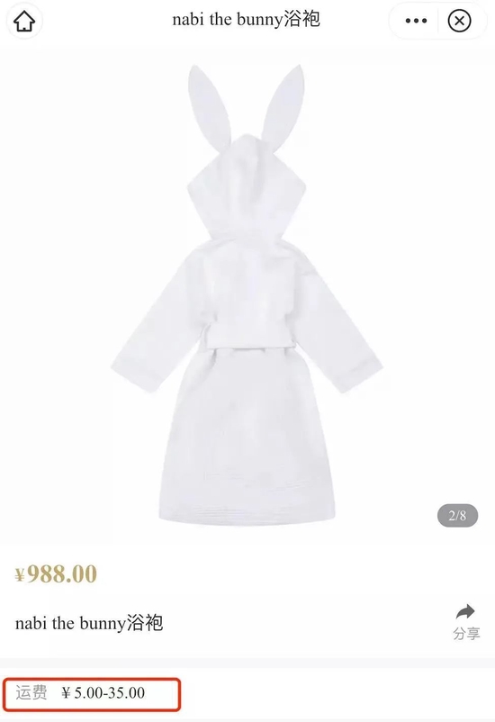 “我花1000元买了一件不是纯棉的浴袍,单买一件将近500元的卫衣还不给包邮。”