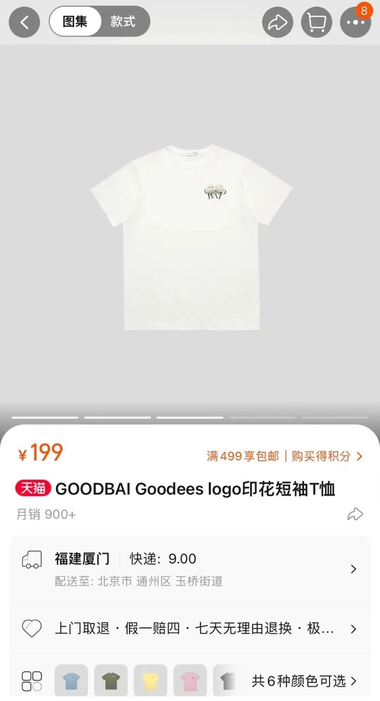 售价199元GOODBAI100%纯棉T恤,月售900+