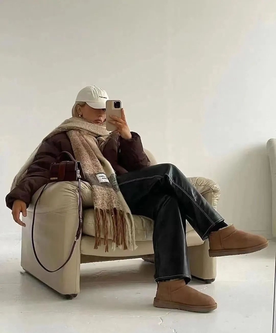 总之,转眼间好像鞋柜里的BV靴、马丁靴都不“香”了。要是冬天你不整套舒服到不行的雪地靴配居家裤,都不好意思说你是追赶潮流的时髦人。