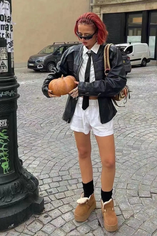 不过,今年流行的雪地靴和往常不太一样。受Y2K复古潮流影响,潮人们脚上的雪地靴比十年前流行的要短很多,属于低腰厚底款式,更易上脚。