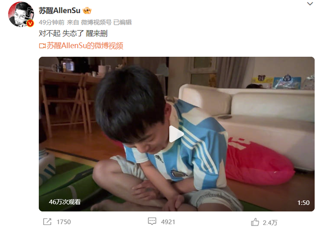 赛后,梅西的球迷苏醒在个人社交账号上发布视频并配文:“对不起,失态了,醒来删”。在视频中,苏醒喜极而泣,大喊“梅西是球王”!