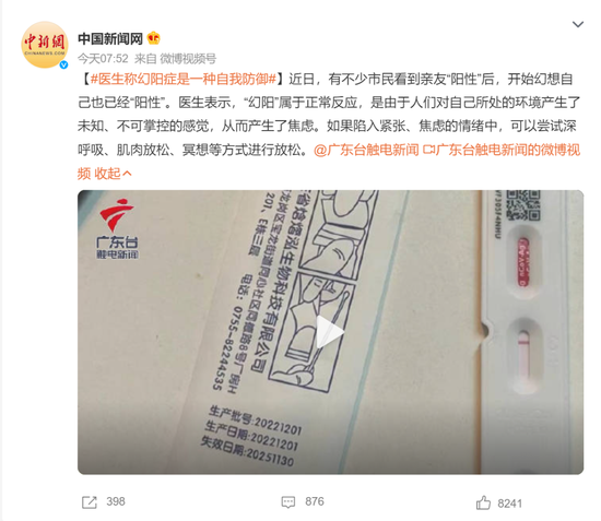 医生表示,“幻阳”属于正常反应,是由于人们对自己所处的环境产生了未知、不可掌控的感觉,从而产生了焦虑。