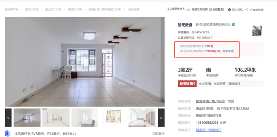 因此,部分城市属于二手房参考价名单中的小区,在二手房平台上都只显示房源参考单价和参考总价,挂牌价单价、总价皆被隐藏不显示,深圳目前就仍是这样的状态。
