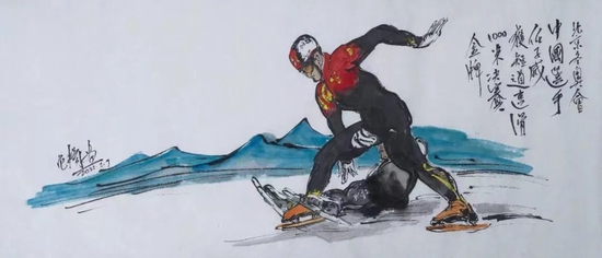范扬先生介绍:“东京奥运会我画了70张,当时‘总台转播车现身东京街头’是热搜,创作了《中国红》;北京冬奥会我画了70张,而这一次世界杯我又画了有70张,两年拿出200件体育美术作品。”以体育运动为题材,既是因为范扬先生本身对体育充满激情,更是因为他想在艺术创造上多做一些事情,这类题材将填补当代中国美术的一个版块。