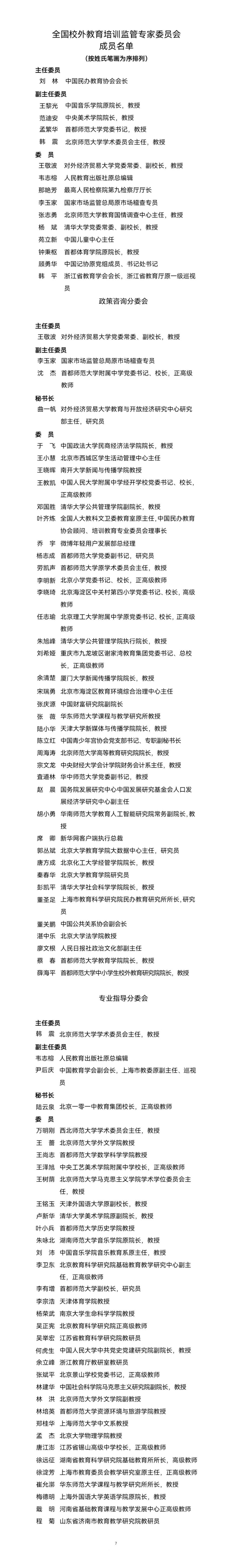 关于全国校外教育培训监管专家委员会成员名单的公示