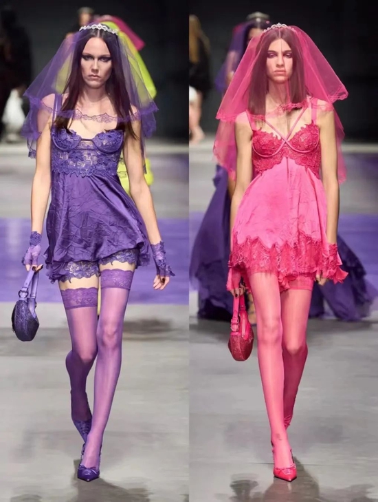 Versace 2023 Spring 以暗黑哥特女神为主题展开的时尚秀场,凭借高饱和色彩诠释哥特风崭新的设计语言,哥特不一定只有黑色和红色,跳跃的色彩依然可以让哥特风格留存。