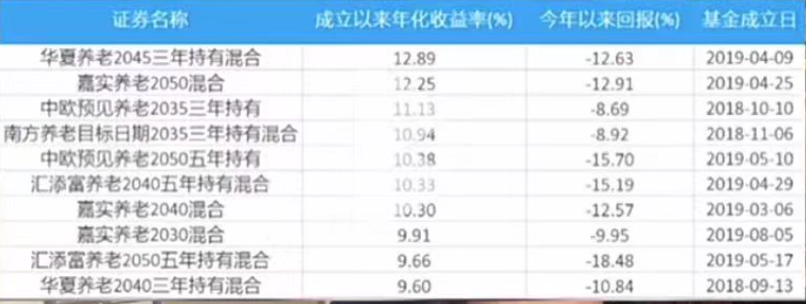但现实情况是,在理财净值化已成大势的背景下,这些投资产品的收益情况仍与市场的波动息息相关。据choice数据,在年化收益率排名前十的养老基金中,成立以来的年化收益基本在9%以上,但今年受到债市冲击及赎回潮影响,回报跌幅在8%-15%不等。