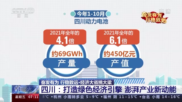 今年1—10月,四川动力电池产量约69GWh、产值约450亿元,分别为2021年全年的4.1倍、6.1倍,全产业链(含上游材料)规上工业增加值同比增长1.5倍。