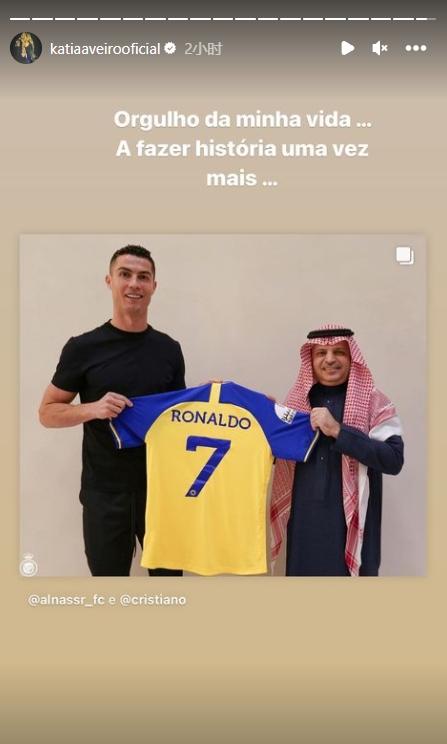 C罗姐姐Katia更新了ins。她晒出C罗加盟官方照片,并写到:我一生的骄傲,再度创造历史。