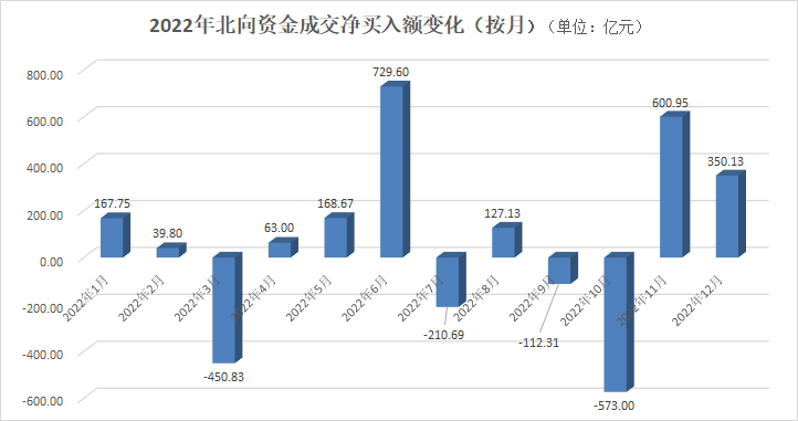 不过,在频繁受到各种不利因素冲击之下,A股市场仍旧保持了韧性,也最终吸引北向资金的回流,特别是2022年最后两个月,北向资金净买入额分别达到600.95亿元和350.13亿元。