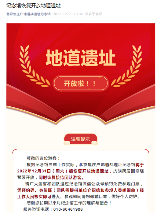 温馨提示:北京市文化和旅游局提醒广大市民、游客,出行时需做好防护、不扎堆,最大限度减少感染风险。