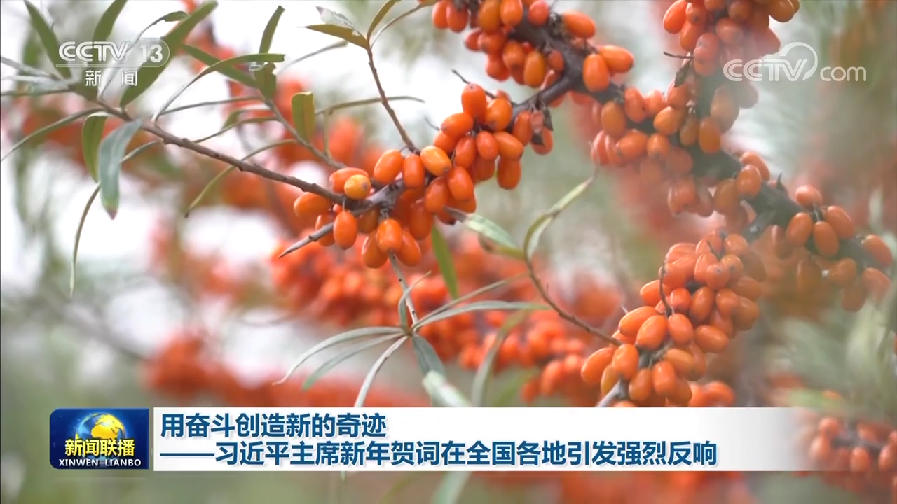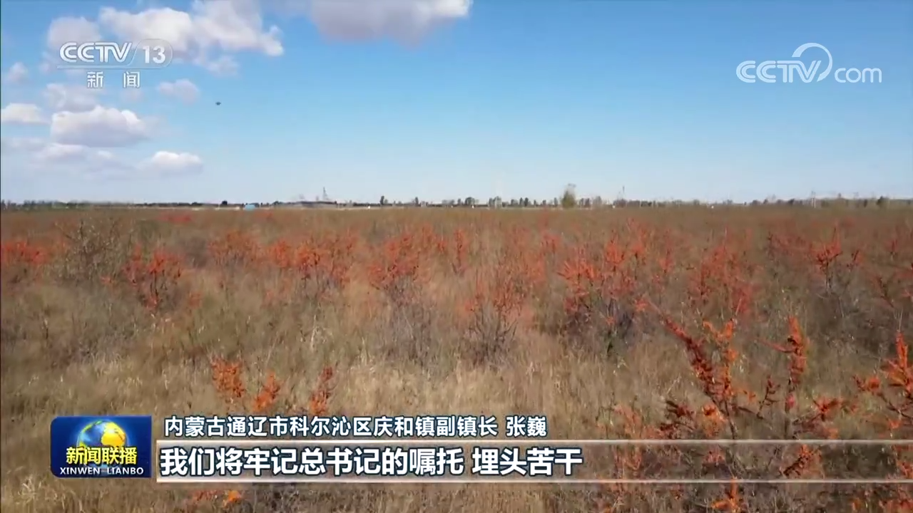 在内蒙古通辽市科尔沁沙区,万亩沙棘果进入丰收季。通过推广沙棘种植,当地将治沙与农民增收相结合,实现了生态效益与经济效益的双赢。