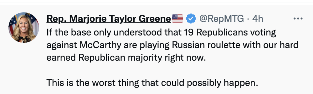 闹剧亲历者中,有人无奈,也有人“看戏”,甚至“抢戏”。共和党众议员玛乔丽·泰勒·格林批评说,这简直是拿着来之不易的多数党地位玩赌博游戏“俄罗斯轮盘”,“这是最糟糕的事”。