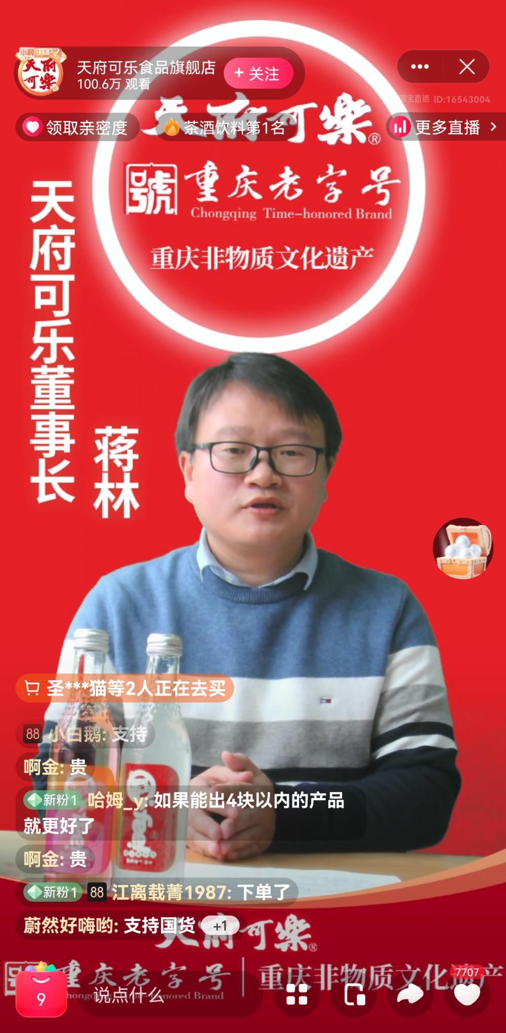 “我们很好,未来也会一直在。”1月5日,天府可乐(重庆)饮品有限公司董事长蒋林现身天猫直播间,进行了公开澄清。截至到5日中午12点,在约一个小时的直播中,直播吸引超百万人观看。