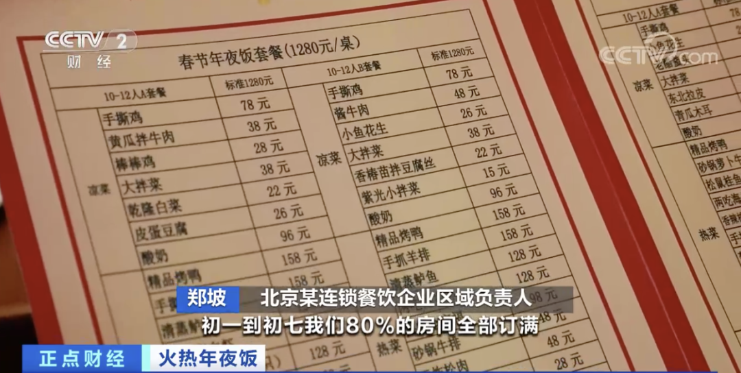 北京某连锁餐饮企业区域负责人 郑坡:除夕当天我们所有的房间已经全都订满了,初一到初七80%的房间订满,跟去年同期对比增长了20%。