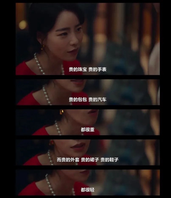 朴妍珍的各色服装对比东恩复仇时的黑色装扮真的格外亮眼,对比极强。这也让COCO暂时放下“刀子”,默默承认在自身的气质和服装配饰的加持下,林智妍确实呈现出了一种不加修饰的肆意与精致。