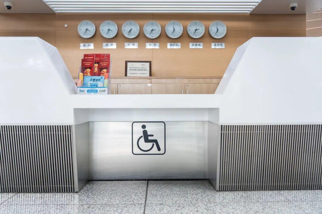 航站楼和综合交通中心(GTC)设有80套无障碍卫生间,配备自动门、安全扶手和高低位呼叫铃;盲道连续铺设到问询台,46部无障碍电梯带有盲文和语音提示,门宽满足轮椅通行……这些设施并不显眼,但切实解决着特殊旅客的出行难题。