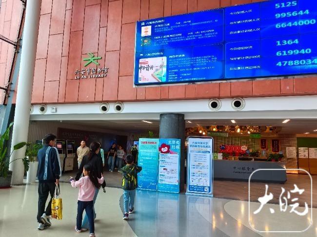 该图书馆墙壁上的大屏幕显示:今日到馆5277人次,借出1397册次……从数字来看,假期前三天,许多人把图书馆当成好去处,来此品味书香,静心升华自我。