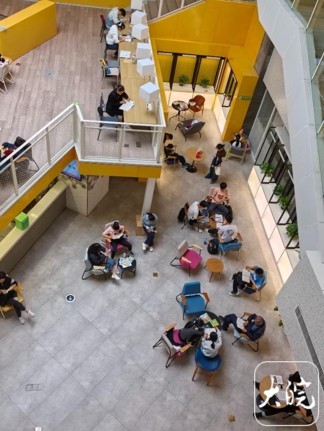 进入一楼大厅后,记者看到,长桌旁、茶几边、沙发上,到处可见安静阅读的读者,没有人大声喧哗。