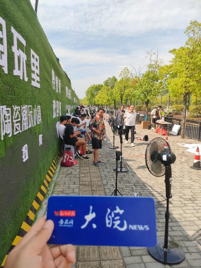 10月3日上午10点多,大皖新闻记者前往景德镇五中附近的小吃街“鸡排大道”。小吃街西边,设置了警示三角锥,城管人员正在值守;小吃街东边,当地弘文社区工作人员正在给摊主们排号,发放《弘文社区五中便民摊点登记备案表》。