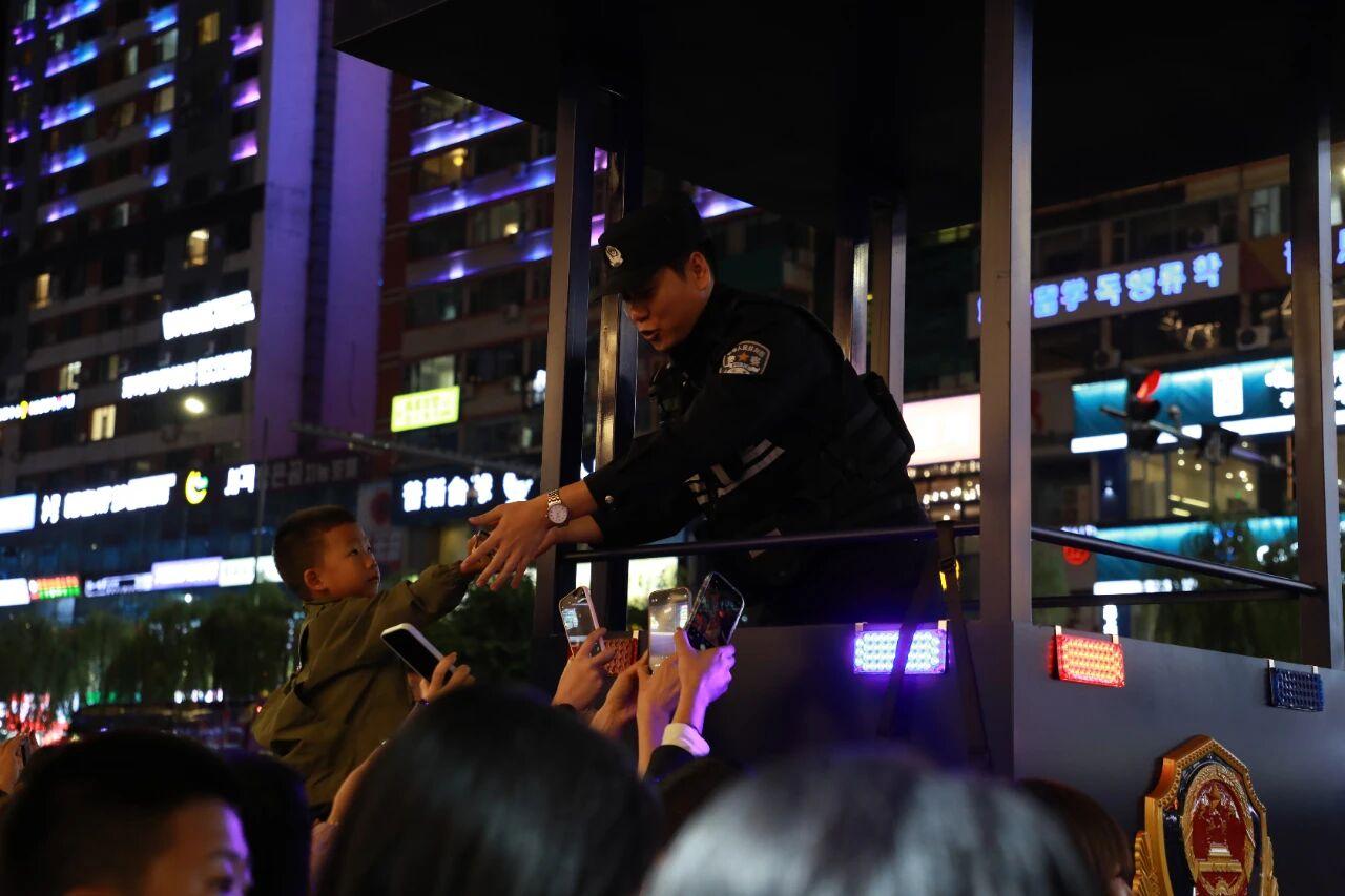 一晚下来,每位执勤民警都要帮近百组组游客拍照,手指不停调整参数,嘴里还不忘叮嘱大家注意脚下安全……