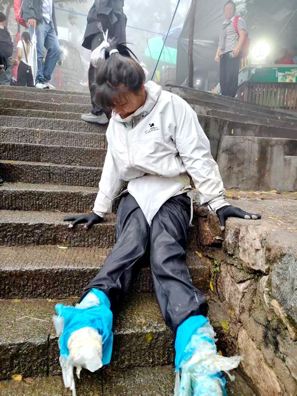 然而,挑战远超想象。首日夜间,泰山突降暴雨,李子萱浑身湿透,体温骤降,一度陷入绝望。“当时浑身发抖,觉得自己可能撑不下去了。”她回忆道。幸得朋友轮流陪伴,在山腰商铺打地铺休整7小时后,次日清晨9时,她再次向山顶发起冲击。