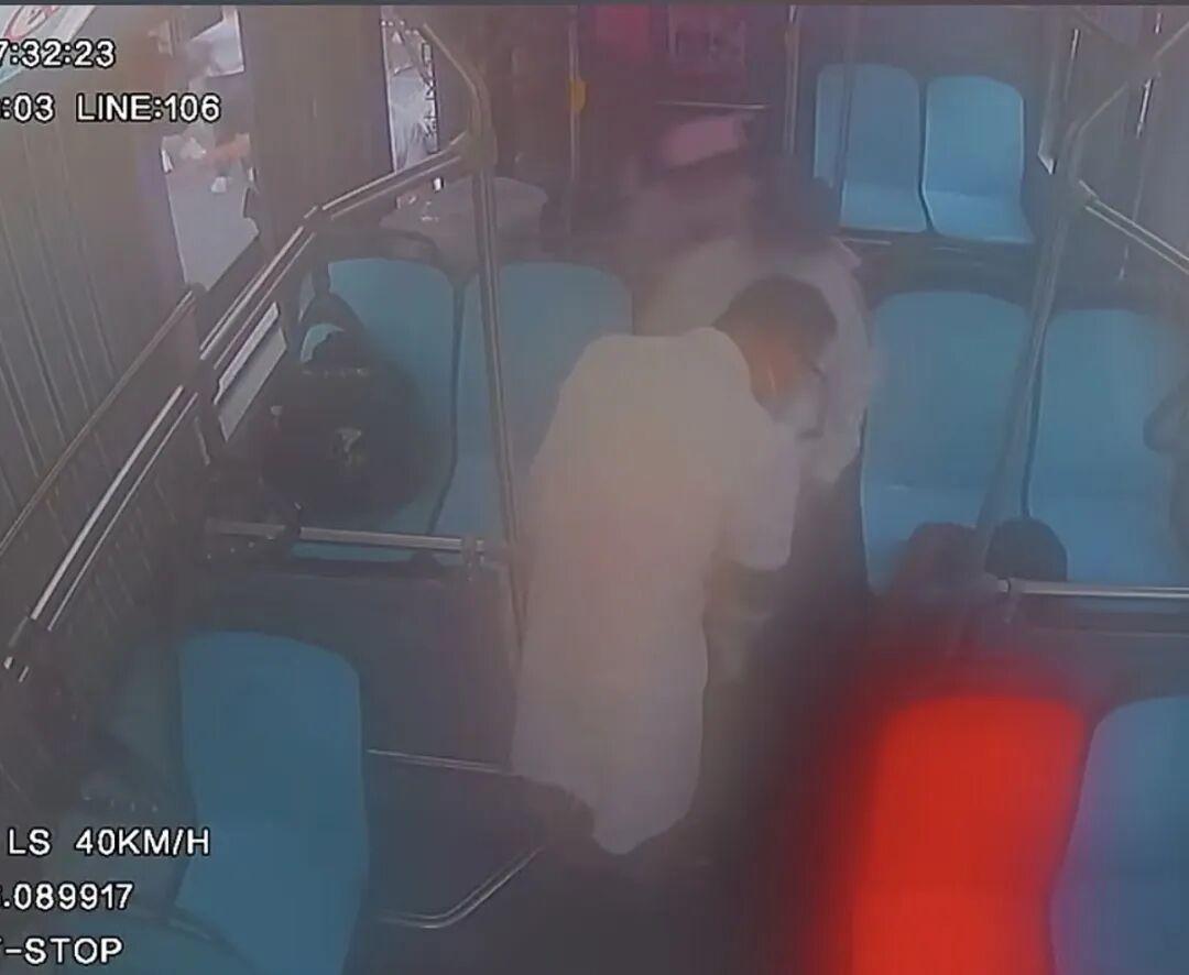 一名中年男子在106路公交车上