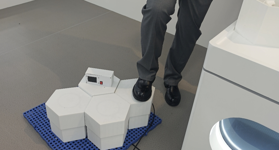 经过无数次头脑风暴,吴禹辰和小伙伴们创造了“步动生能”发电地板。“您踩一脚试试!”他邀请观众体验。随着“咔嗒”一声,地砖微微下陷,装备上的灯光也适时亮起。