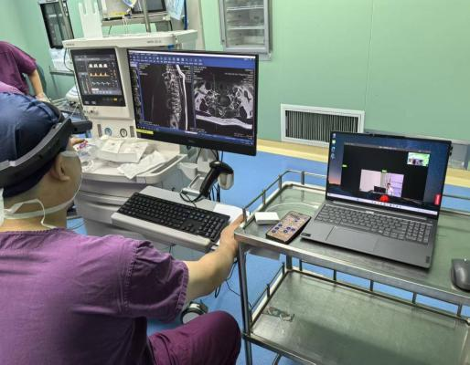 大皖新闻讯 近日,安医大一附院脊柱外科申才良教授团队成功完成一例5G+头戴式设备远程骨科机器人手术,为一名身处安庆的腰椎骨折患者实施了精准治疗。同期,团队还通过该技术为一名病情复杂的患者进行了远程会诊,准确判断病因并制定手术方案。这标志着安徽省在骨科机器人临床应用领域迈上了新台阶。