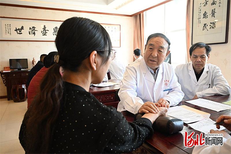 10月13日,李佃贵(右二)在为患者诊断病情。河北日报记者 史晟全摄
