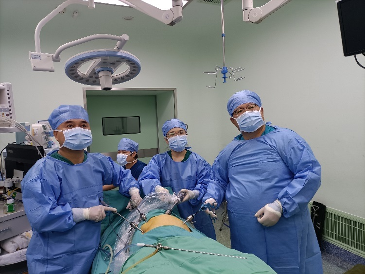 经过紧张而充分的术前准备,手术如期开展。麻醉团队采用气管插管全麻联合腹横肌平面神经阻滞的“个体化”麻醉方案,以减少阿片类药物用量,得益于团队的严密监护和精准用药,术中患者生命体征平稳。妇科病房主任李同民与团队抓紧时间,凭借丰富经验和娴熟操作,在狭小的盆腔空间内精准分离、迅速止血、完整切除,整个手术过程仅用时36分钟。术后患者顺利恢复肌力与自主呼吸,成功拔除气管插管,各项生命体征平稳。