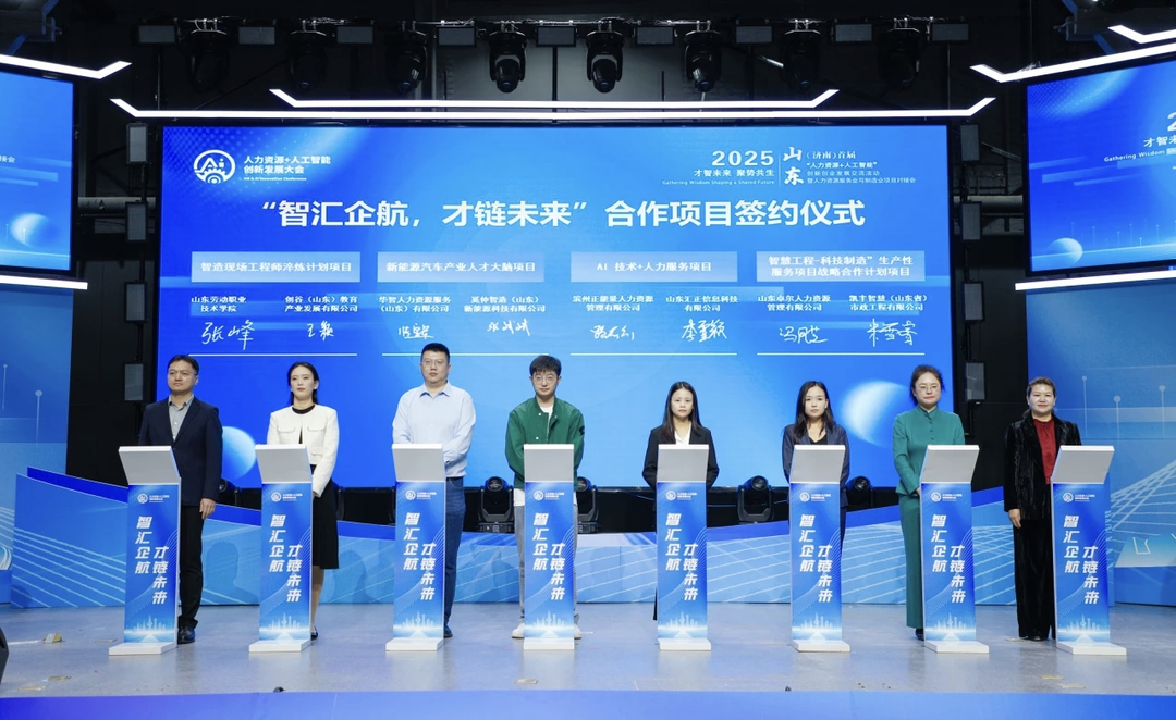 作为全省首次聚焦“人力资源+人工智能”的专项交流活动,本次会议汇聚多元主体,形成跨界合作新格局。活动吸引AI领域专家、知名投资人、行业领军人物,以及省市重点国企、优质人力资源服务机构、AI技术企业等150余位代表参与,涵盖“政、产、学、研、投”全链条资源。在“智汇企航,才链未来”合作项目签约环节,多家优质人力资源服务机构与重点制造企业达成合作,围绕人才定制培养、智能用工管理、技术联合研发等领域开展深度合作,推动制造业进行人力成本优化。同时,济南都市圈合作项目进一步扩大资源辐射范围,助力区域内人力资源服务标准统一、技术共享、项目互通,为济南都市圈产业一体化发展奠定基础。