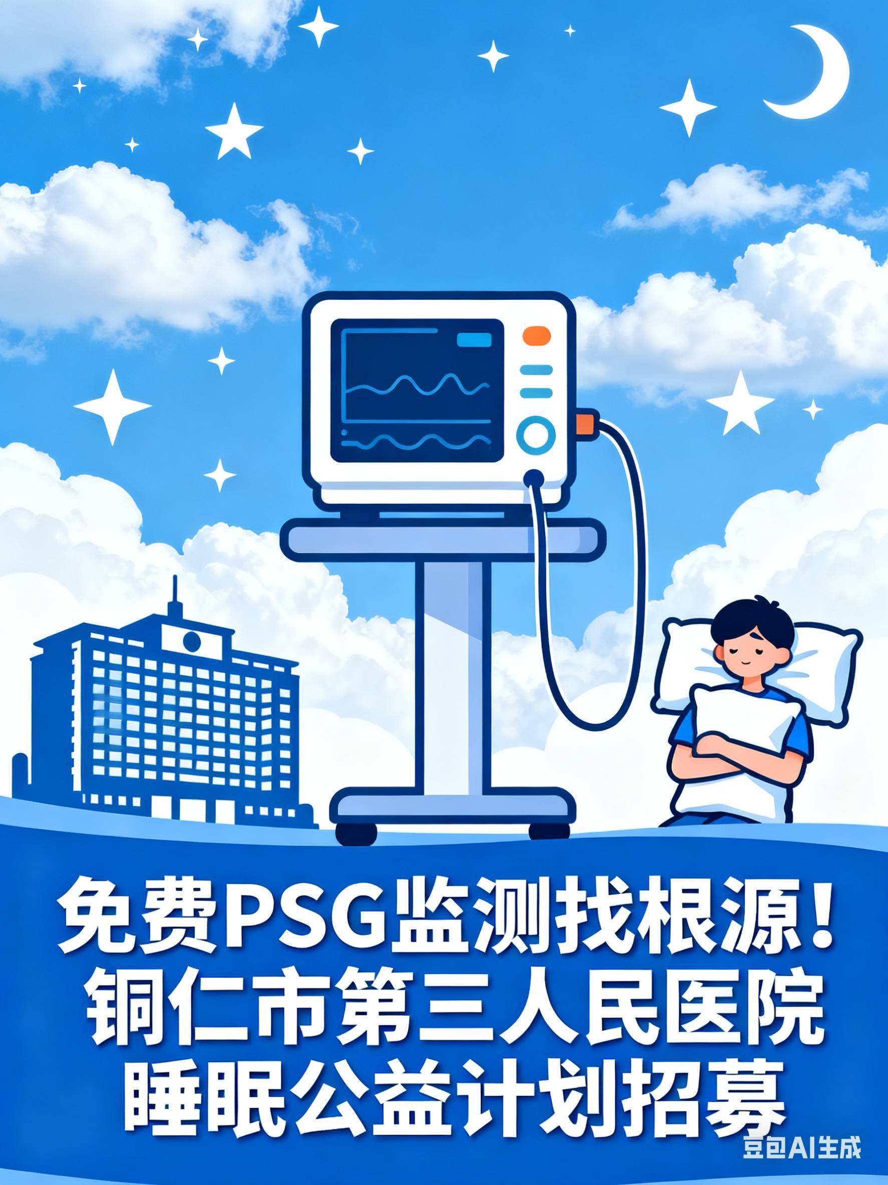 为助力大众了解自身睡眠状况,推动睡眠健康科普工作,铜仁市第三人民医院现启动“睡眠健康公益计划”,面向社会公开招募志愿者,免费提供价值数百元的多导睡眠监测(PSG)服务,用专业技术帮你找到睡眠问题的“根源”!