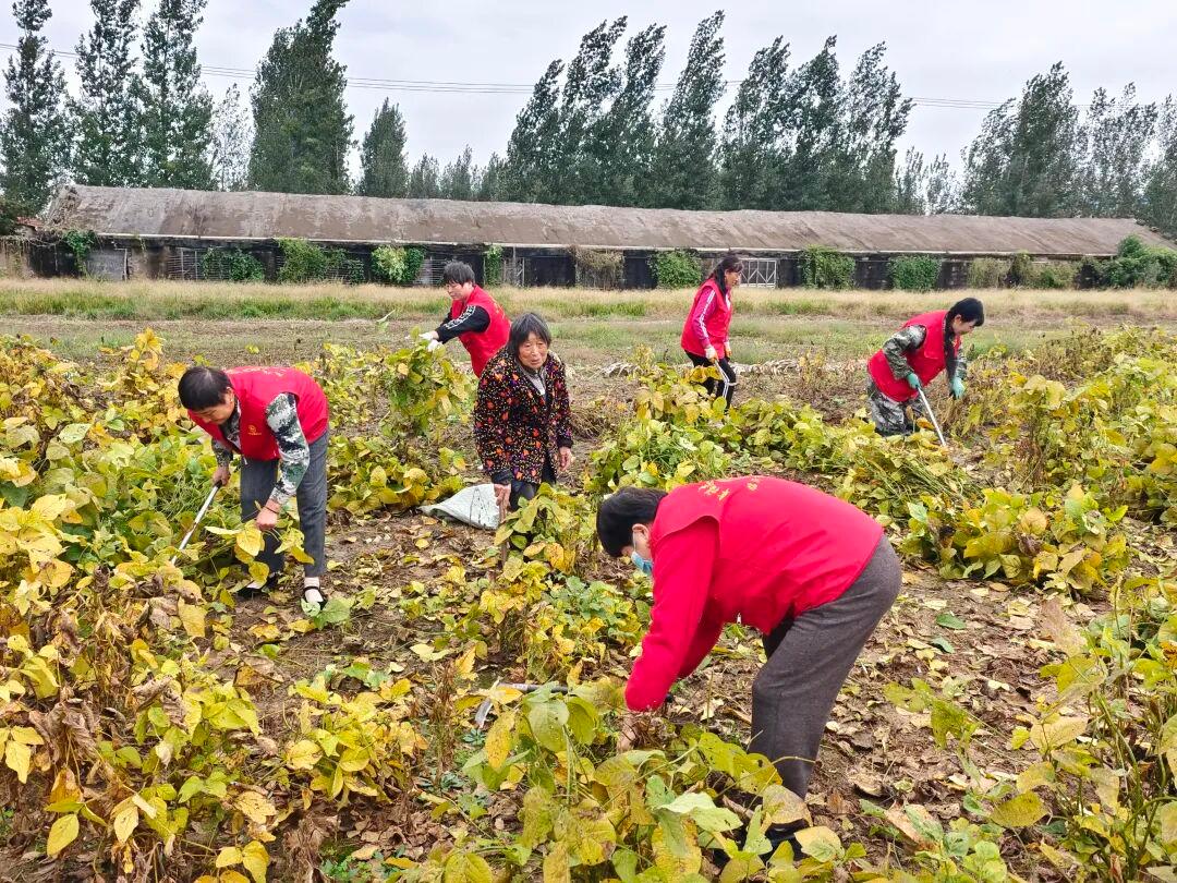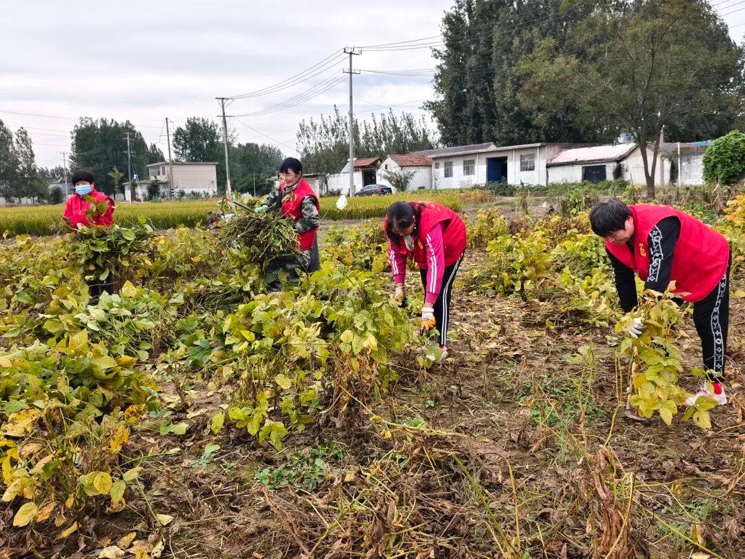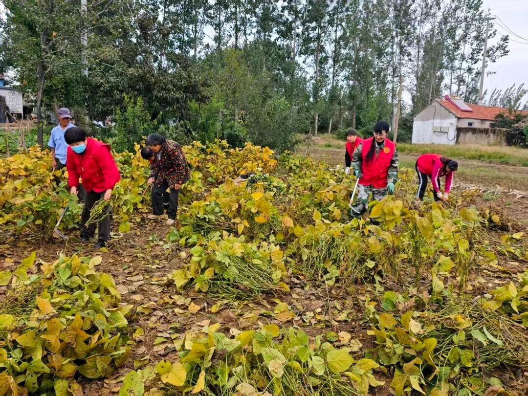 汗水浸湿了衣背,泥土沾满了裤脚,但没有人叫苦叫累。阳光下,那一抹抹跃动的“志愿红”,与金黄色的豆田交相辉映,构成了秋日里最温暖、最动人的画卷。