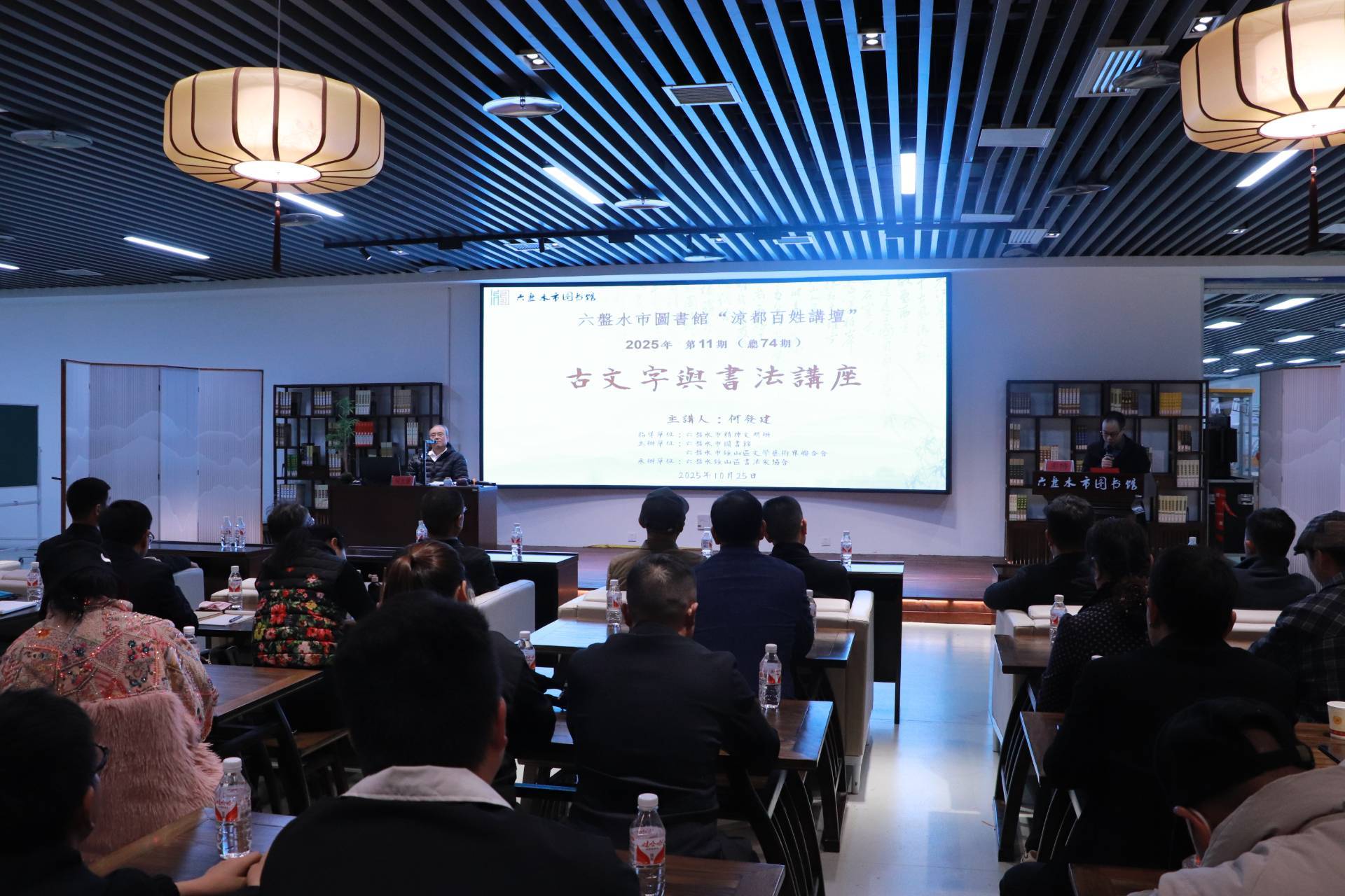 据介绍,本次活动是六盘水市图书馆“凉都百姓讲坛”2025年第11期,通过“讲座+展览”的形式特邀著名古文字学者、六盘水市书画院常务副院长何发建先生以《从古文字看书法源头》为题,带领广大读者朋友与书法爱好者增进对古文字与书法艺术的认知。