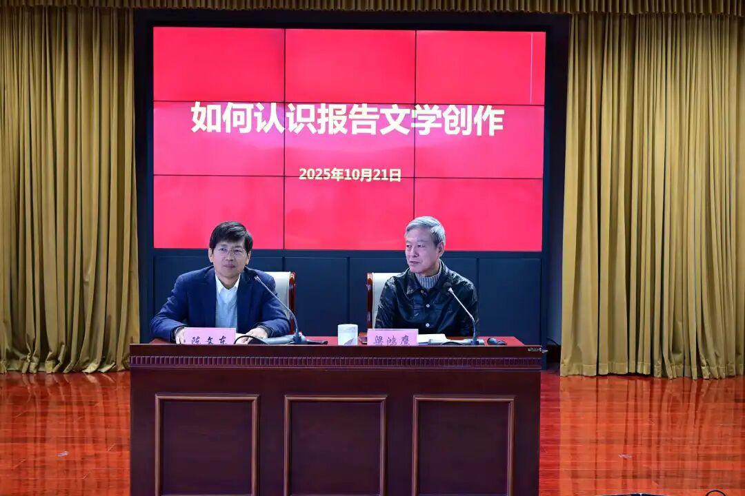 2025年10月21日上午,为深入学习贯彻全国报告文学创作会议精神,山东省报告文学学会举办专题报告会,邀请中国报告文学学会常务副会长兼秘书长梁鸿鹰到济南作了题为《如何认识报告文学创作》的专题讲座。