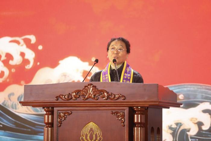 居士代表汪玉娥女士在致辞中表示:作为居士代表,我定当秉承初心,不遗余力地支持义净文化的弘扬与发展,坚定护持义净寺的佛教文化事业,愿尽绵薄,共成菩提胜缘。