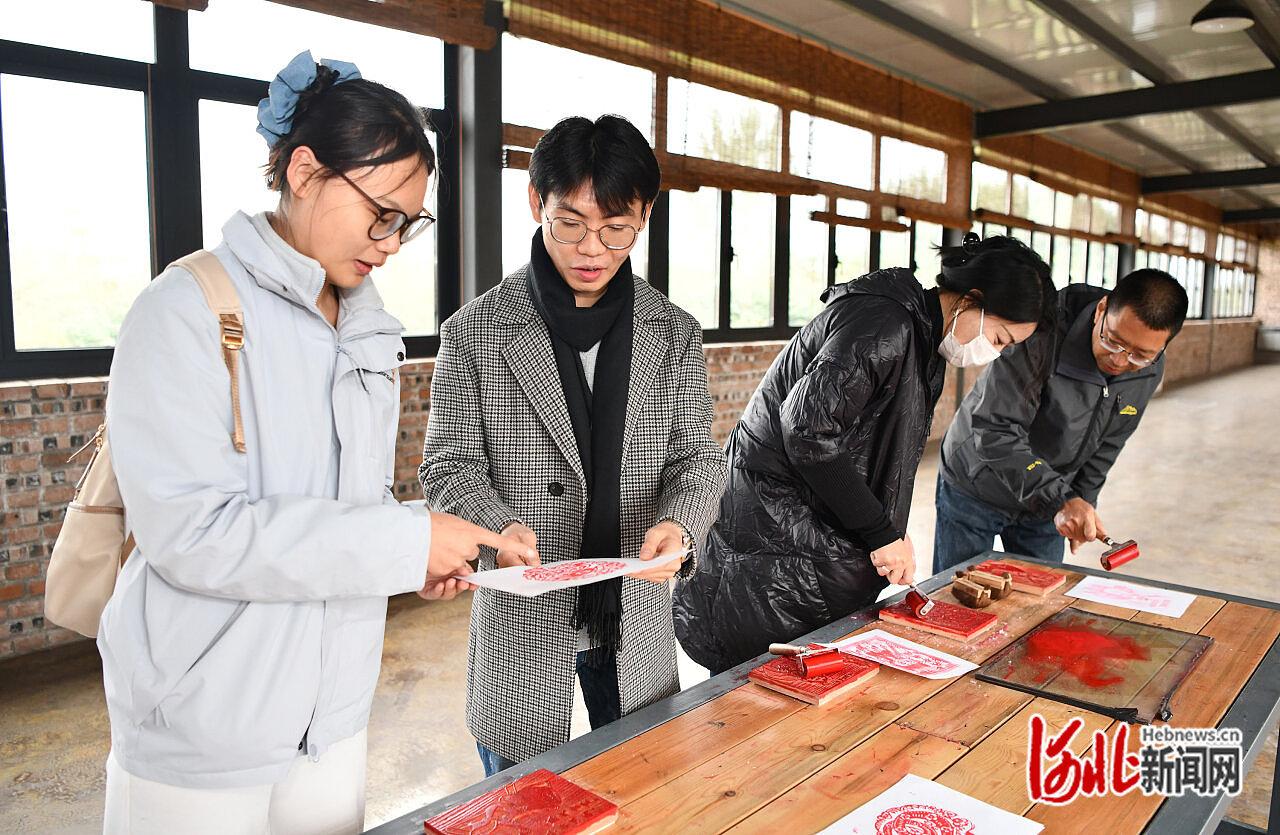 10月22日,在保定市华融纸厂,参观者体验版画制作。河北日报记者 寇国莹摄