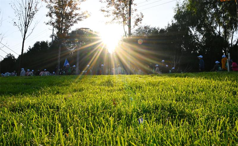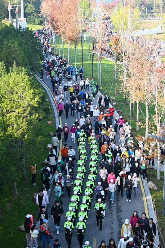 10月26日,徒步爱好者沿石家庄环城绿道而行。