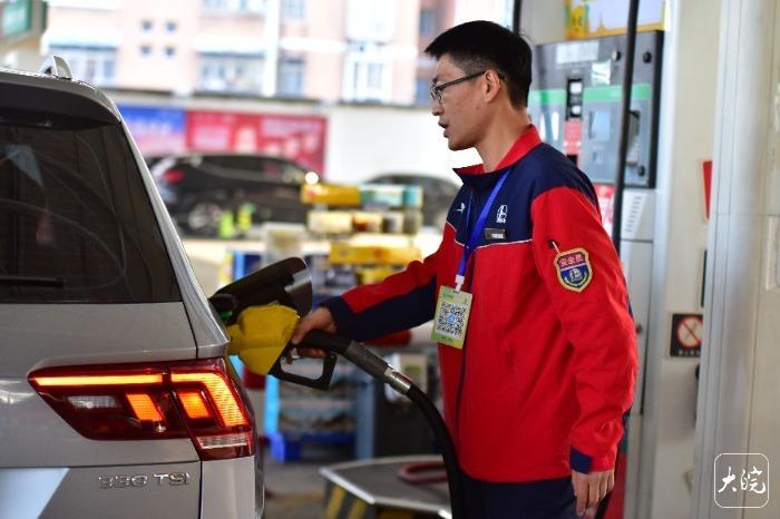 大皖新闻讯 10月27日,在中石化阜阳市城西加油站,工作人员在给汽车加油。